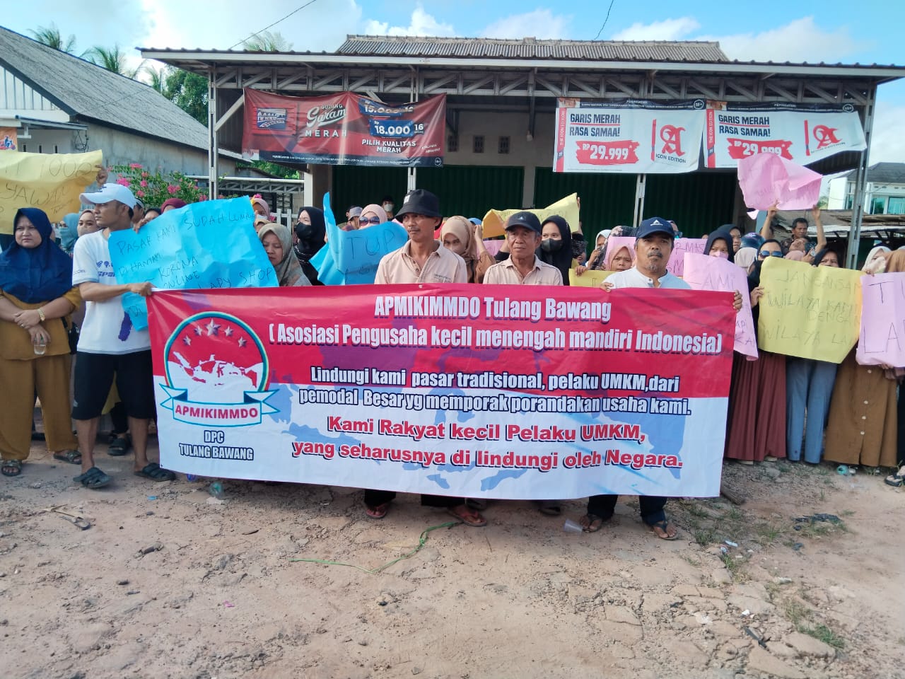 Ketua DPC APMIKIMIMDO Tulang Bawang Rudi piliang dan di dampingi oleh Ketua DPD APMIKIMIMDO provinsi lampung Adam Kurniawan,dalam orasinya mengatakan di depan ratusan pedagang pasar Rawa Jitu yang menolak keberadaan Swalayan Lady Sop yang berdiri memukau 500 Meter dari pasar Rawa jitu, yang membuat dampak sangat buruk buat pedagang pasar Tradisional dan UMKM turun drastis omset nya sampai 90,%.