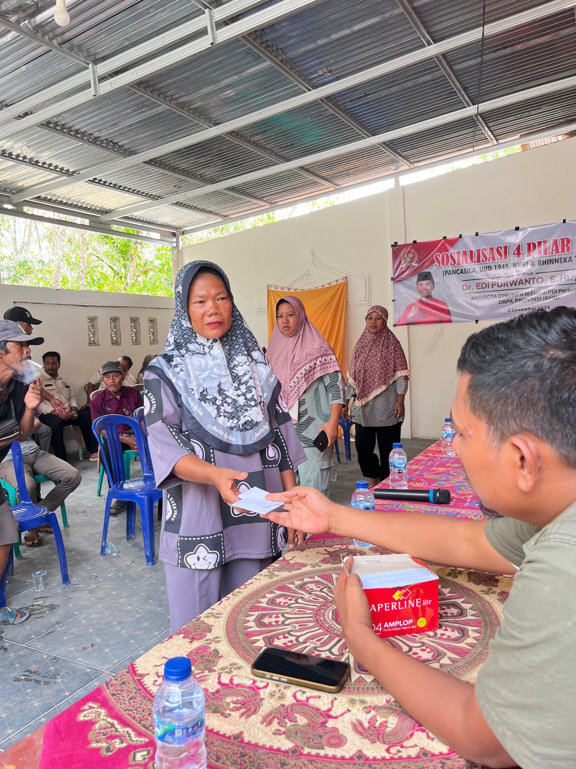 SAROLANGUN – Anggota DPR RI Dapil Jambi, Edi Purwanto, menggelar kegiatan Sosialisasi 4 Pilar Kebangsaan bersama masyarakat Desa Jati Baru Mudo, Kecamatan Mandiangin Timur, Kabupaten Sarolangun, Jambi. Jum’at, 12/12/2025.