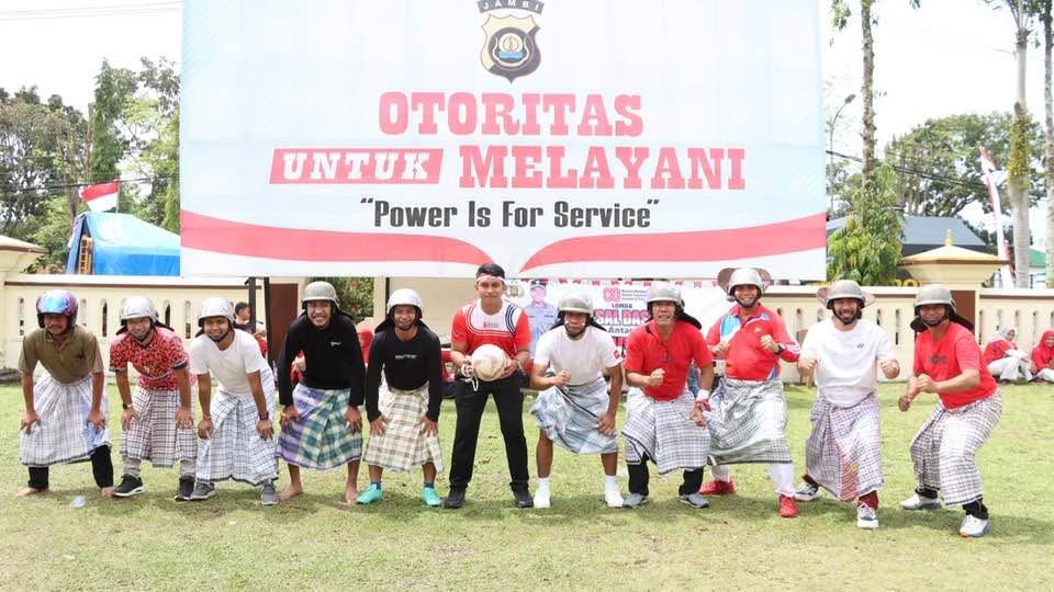 KABARUPDATE.ID, Merangin – Gelak tawa dan sorak sorai mewarnai laga futsal unik di Mapolres Merangin, Sabtu pagi (16/8). Pertandingan antara Pejabat Utama (PJU) Polres Merangin melawan Insan Pers Merangin ini berlangsung berbeda dari biasanya. Para pemain tidak memakai jersey dan sepatu futsal, melainkan berbalut kain sarung dan helm di kepala.