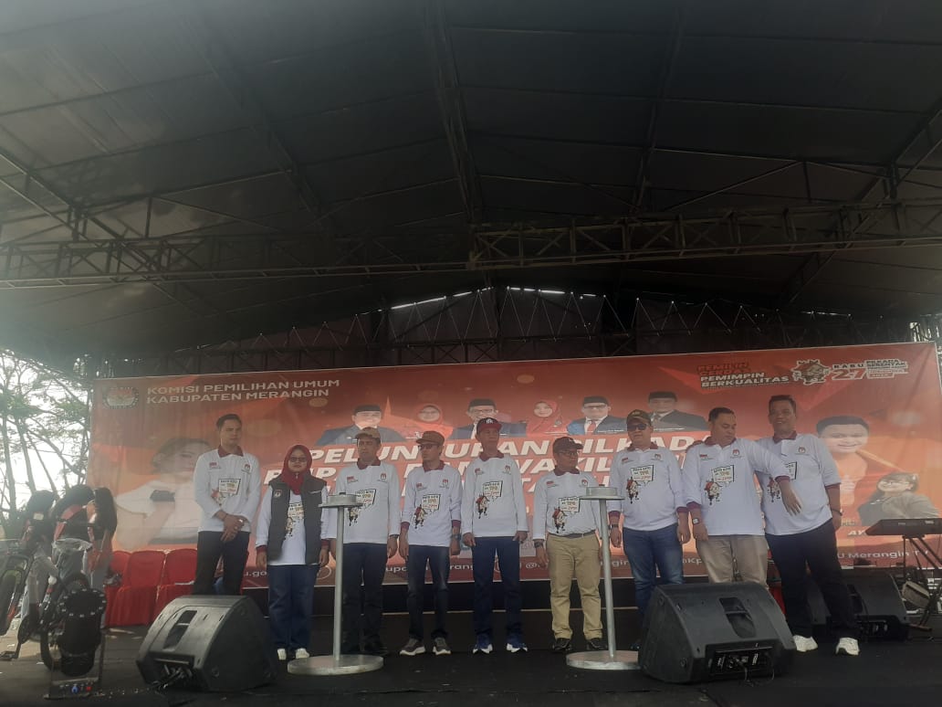 Acara yang digelar mulai pukul 07.00 WIB di lapangan Kantor Bupati Merangin juga tampak hadir Ketua KPU Provinsi Jambi, Iron Syahroni, Ketua KPU Kabupaten Merangin, Alber Trisman.